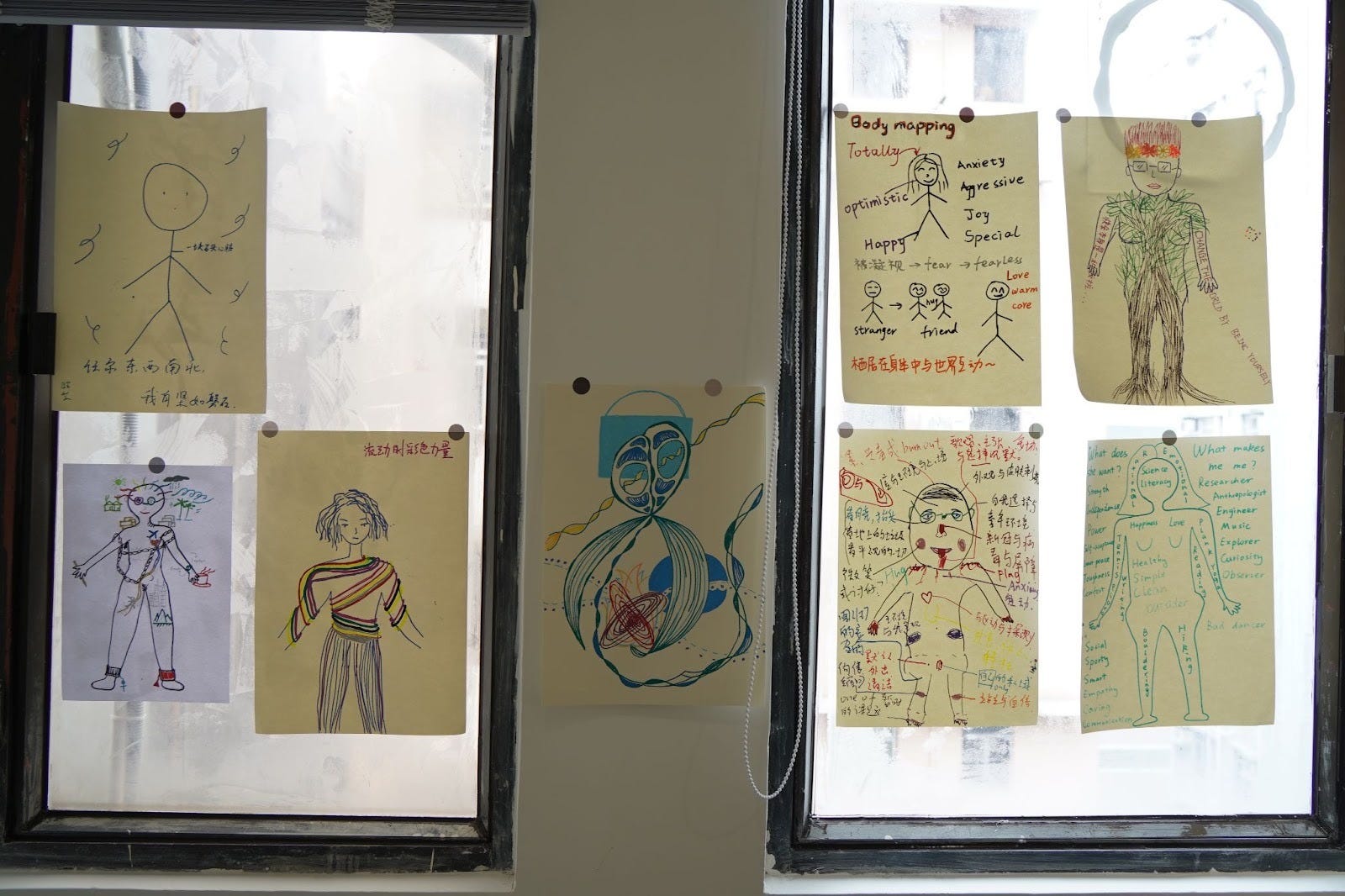 活动中,我们在纸上画出身体轮廓,然后用各种颜色、图案、文字呈现自己的经历、记忆、身份......现场的姐妹们都留下了珍贵的作品✨